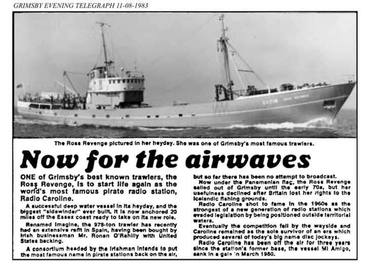 From 1980 fishing vessel “Ross Revenge” has been the last ship used by Radio Caroline here is the picture and some details of the vessel story: